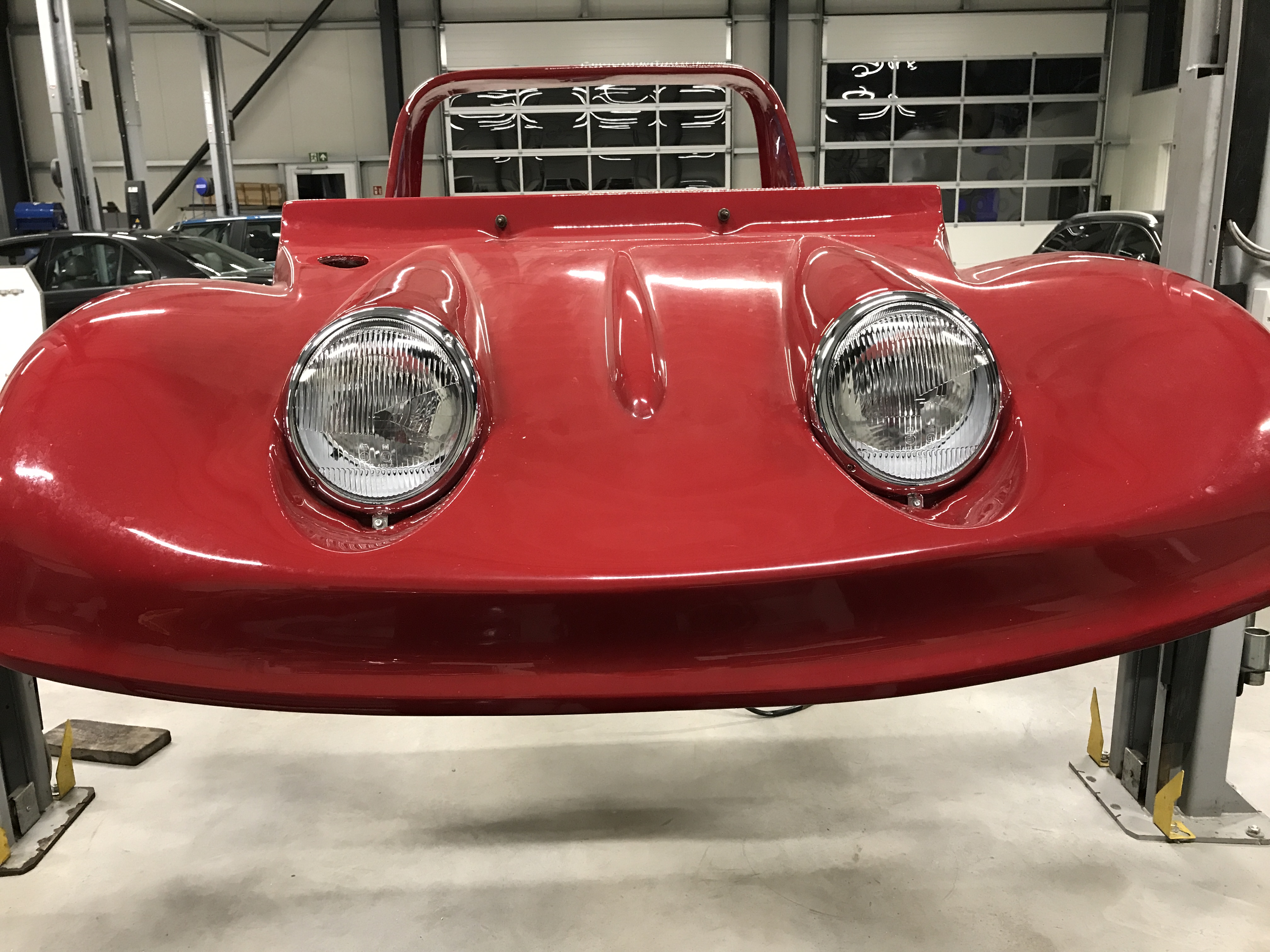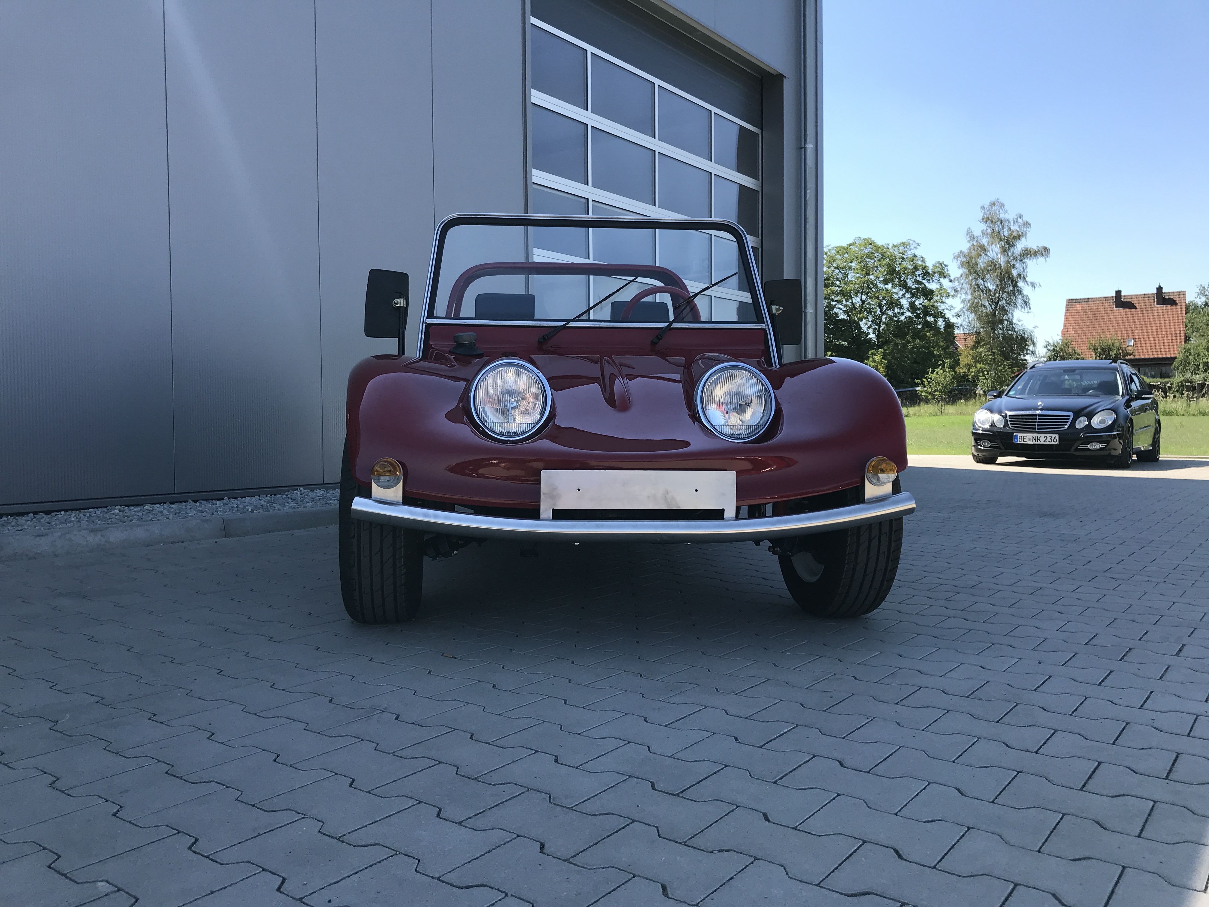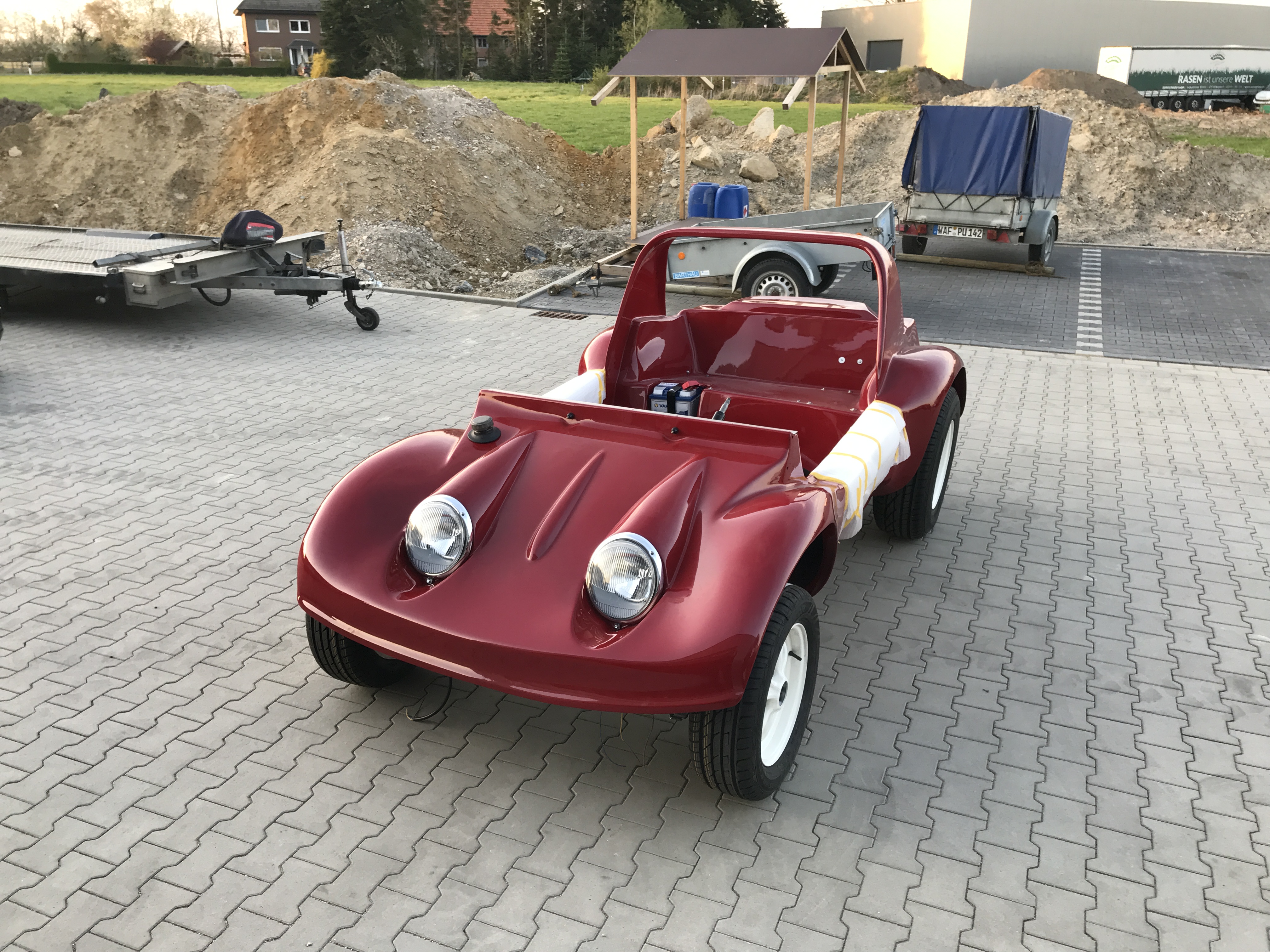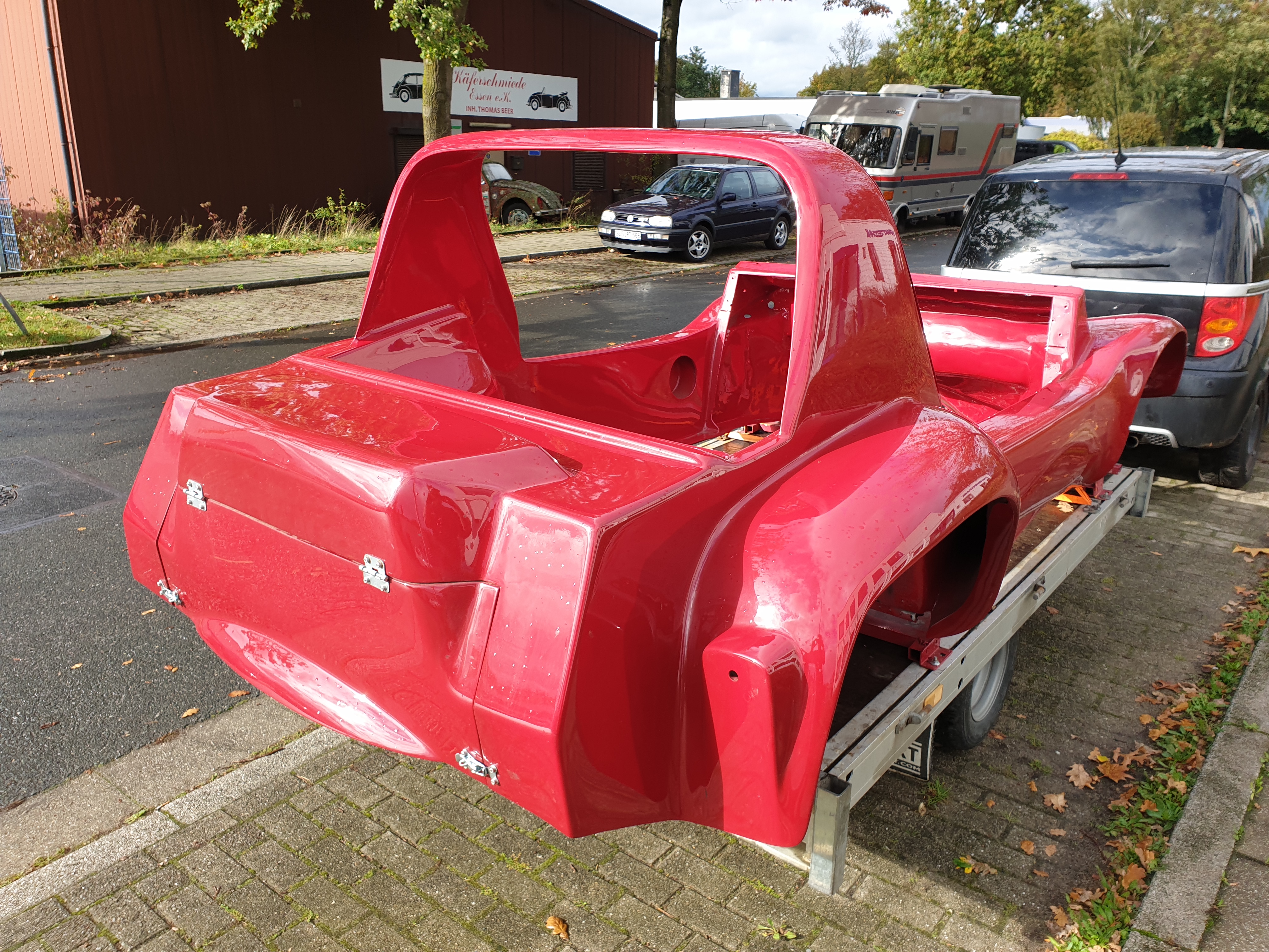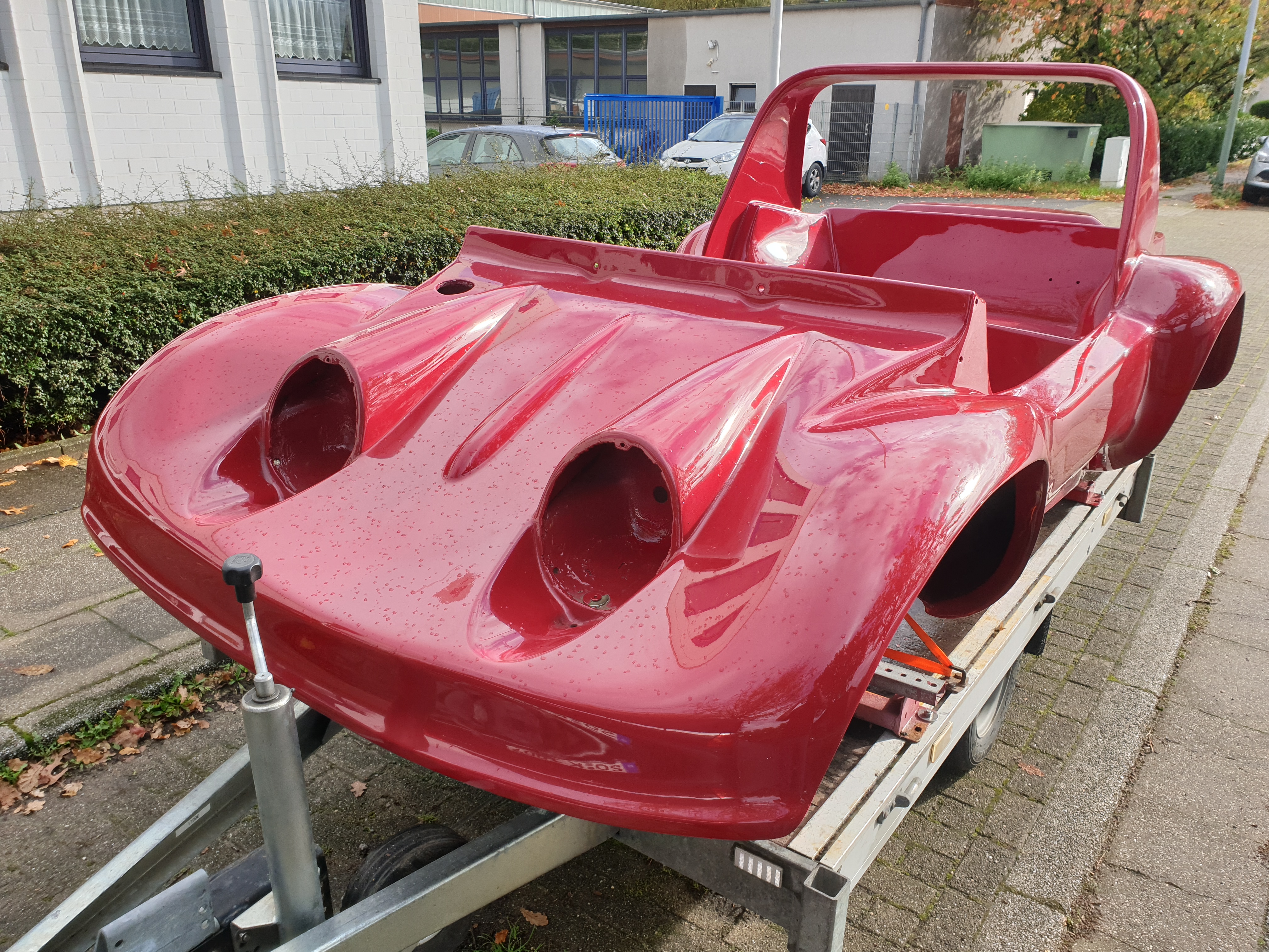 GFK Karosserie auf gekürztem VW Käfer Fahrgestell. Das Fahrzeug wurde nach Kundenwunsch komplettiert und modifiziert.