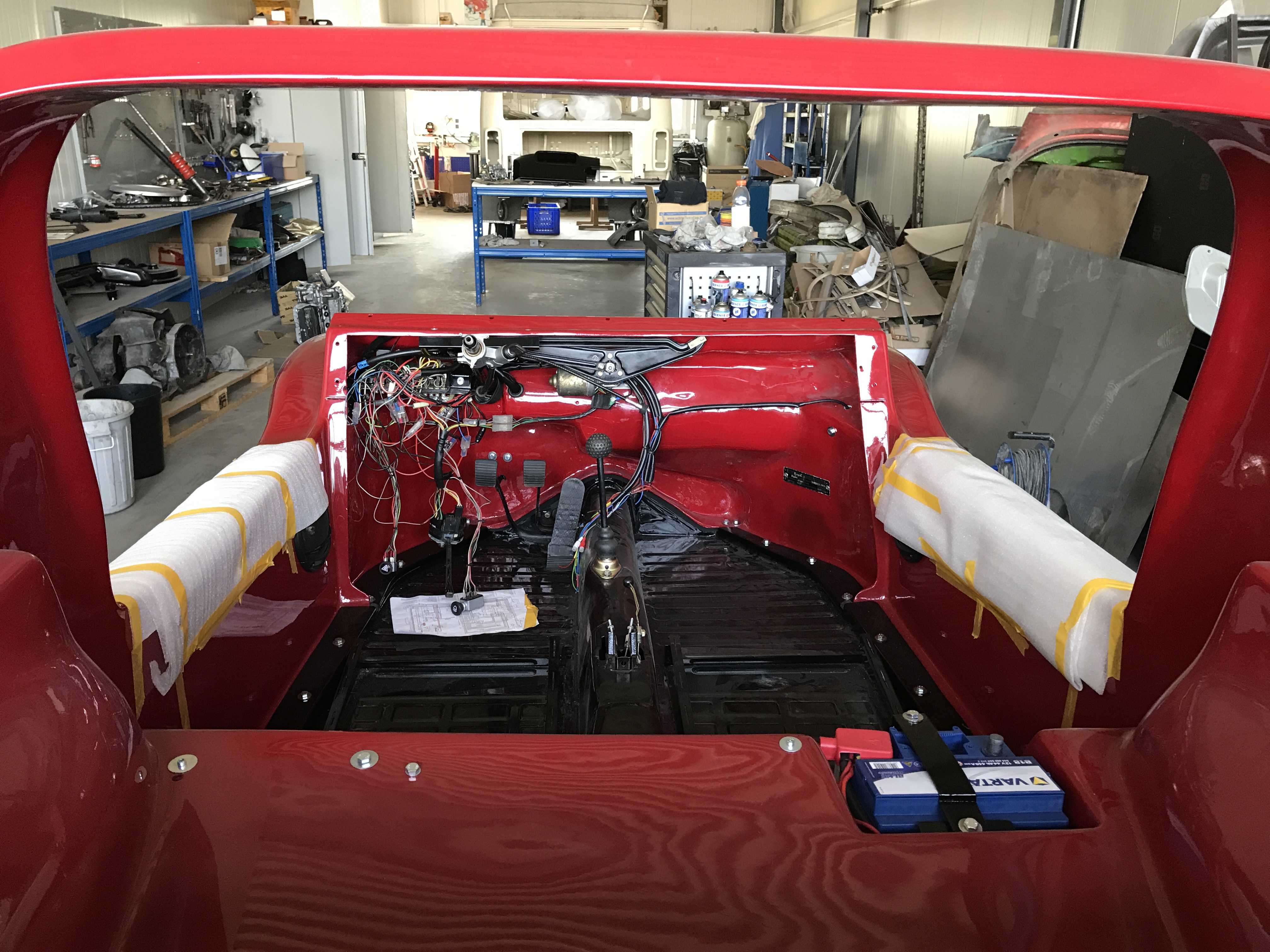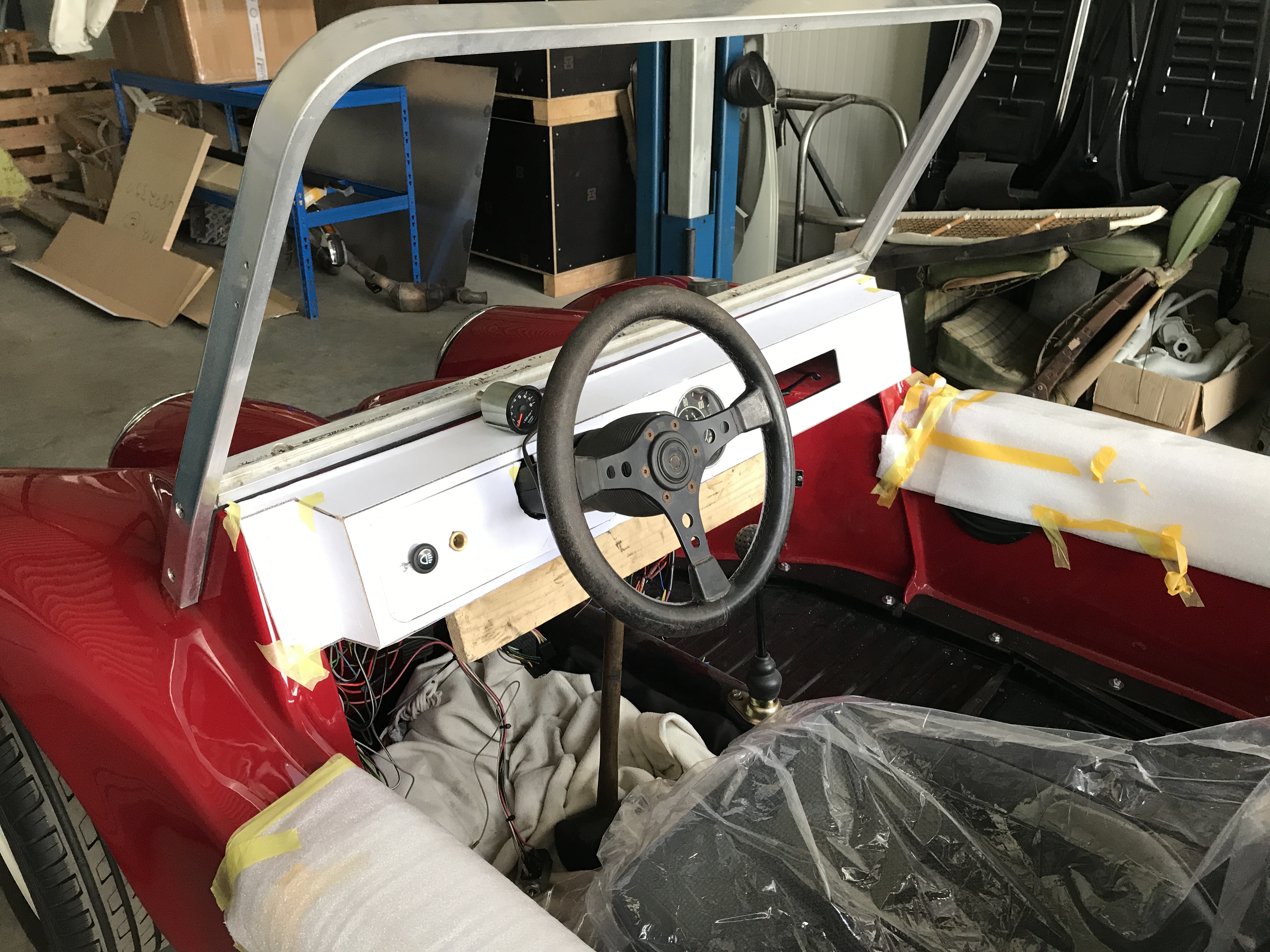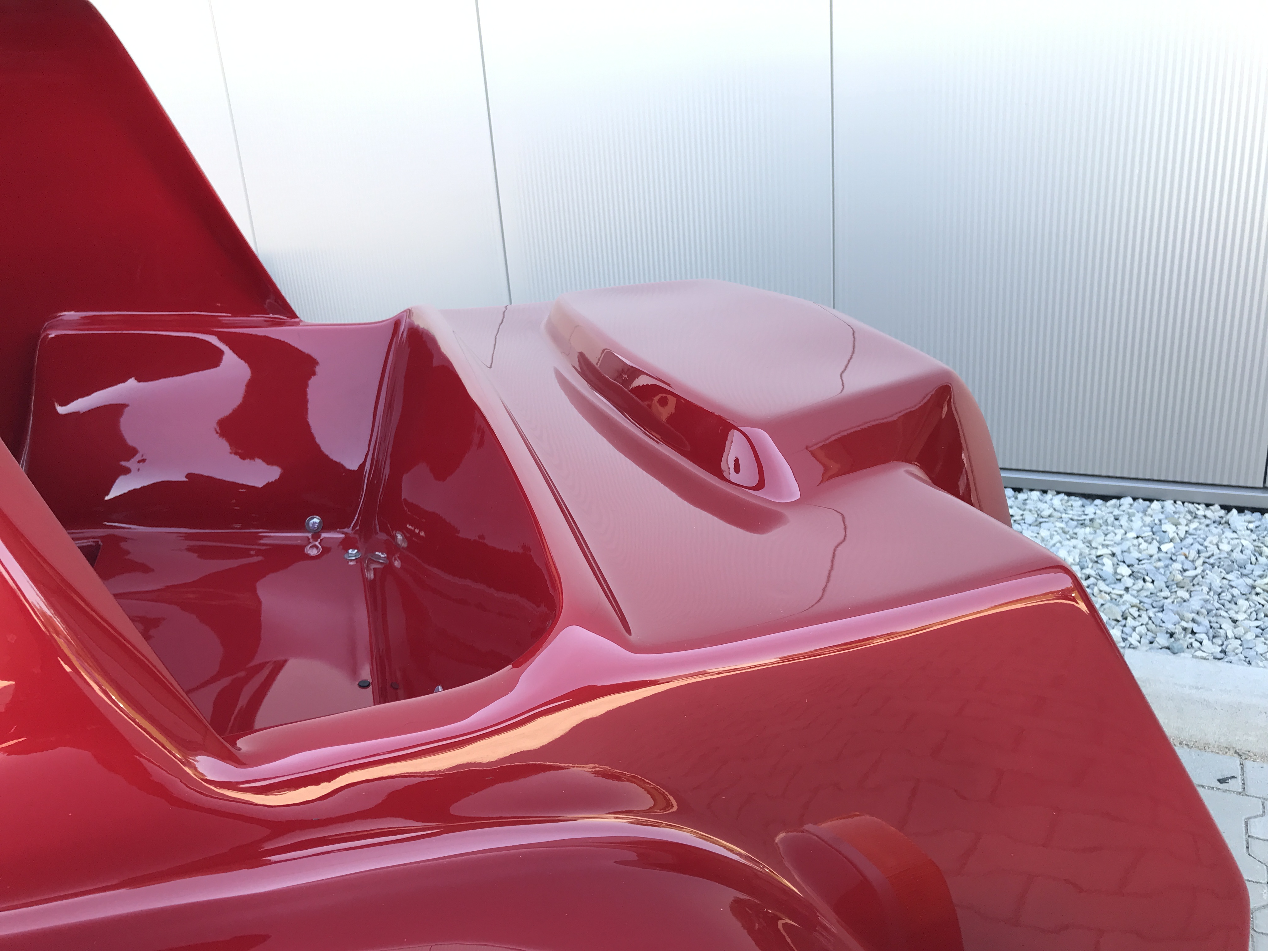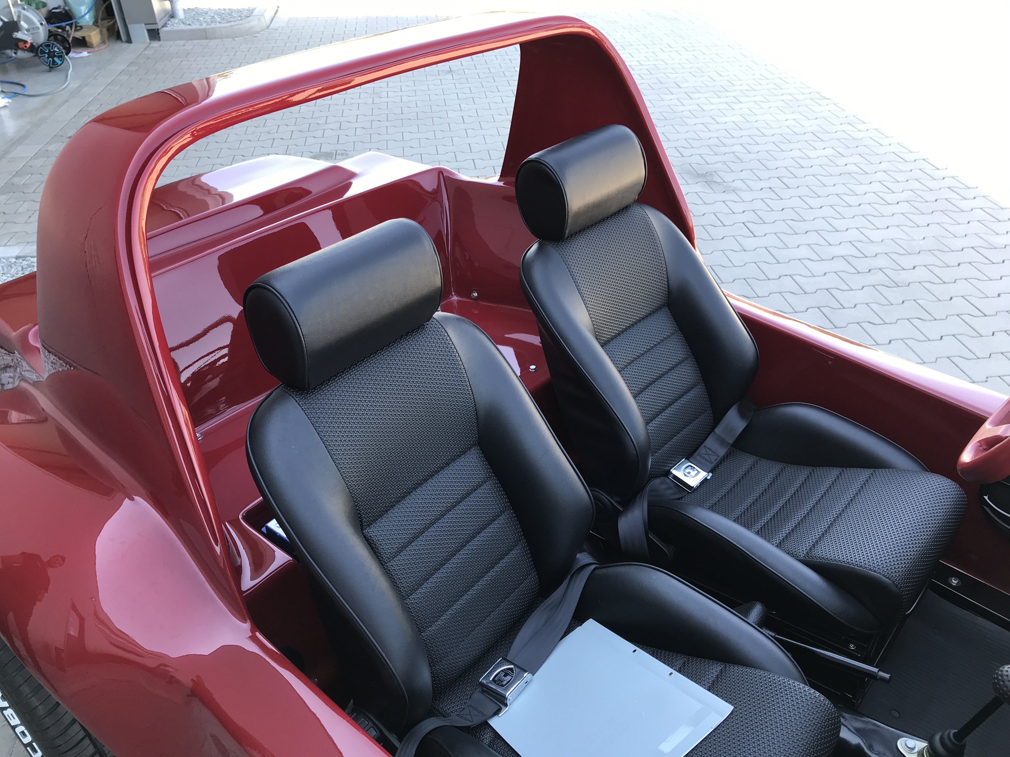 GFK Karosserie auf gekürztem VW Käfer Fahrgestell. Das Fahrzeug wurde nach Kundenwunsch komplettiert und modifiziert.