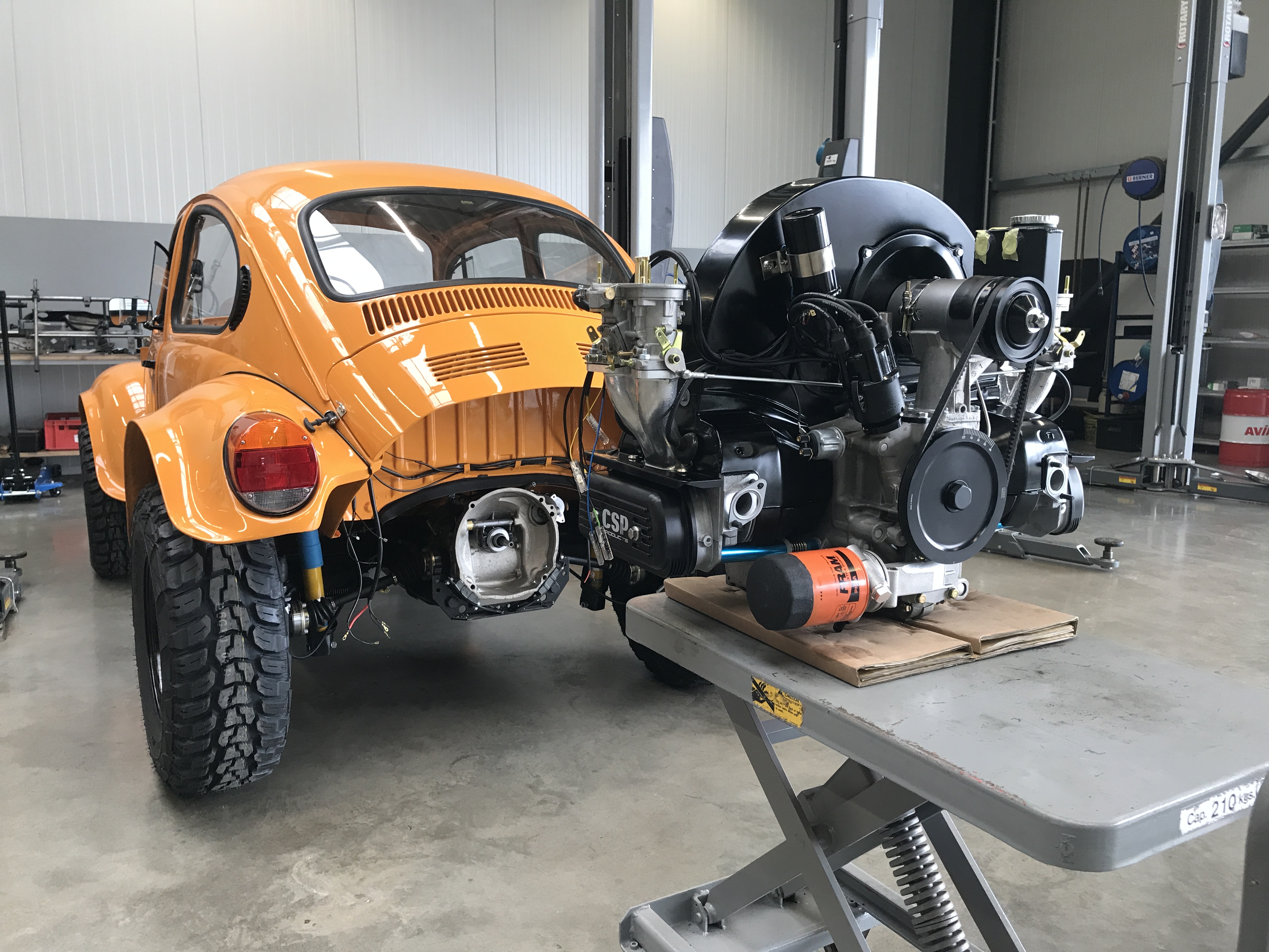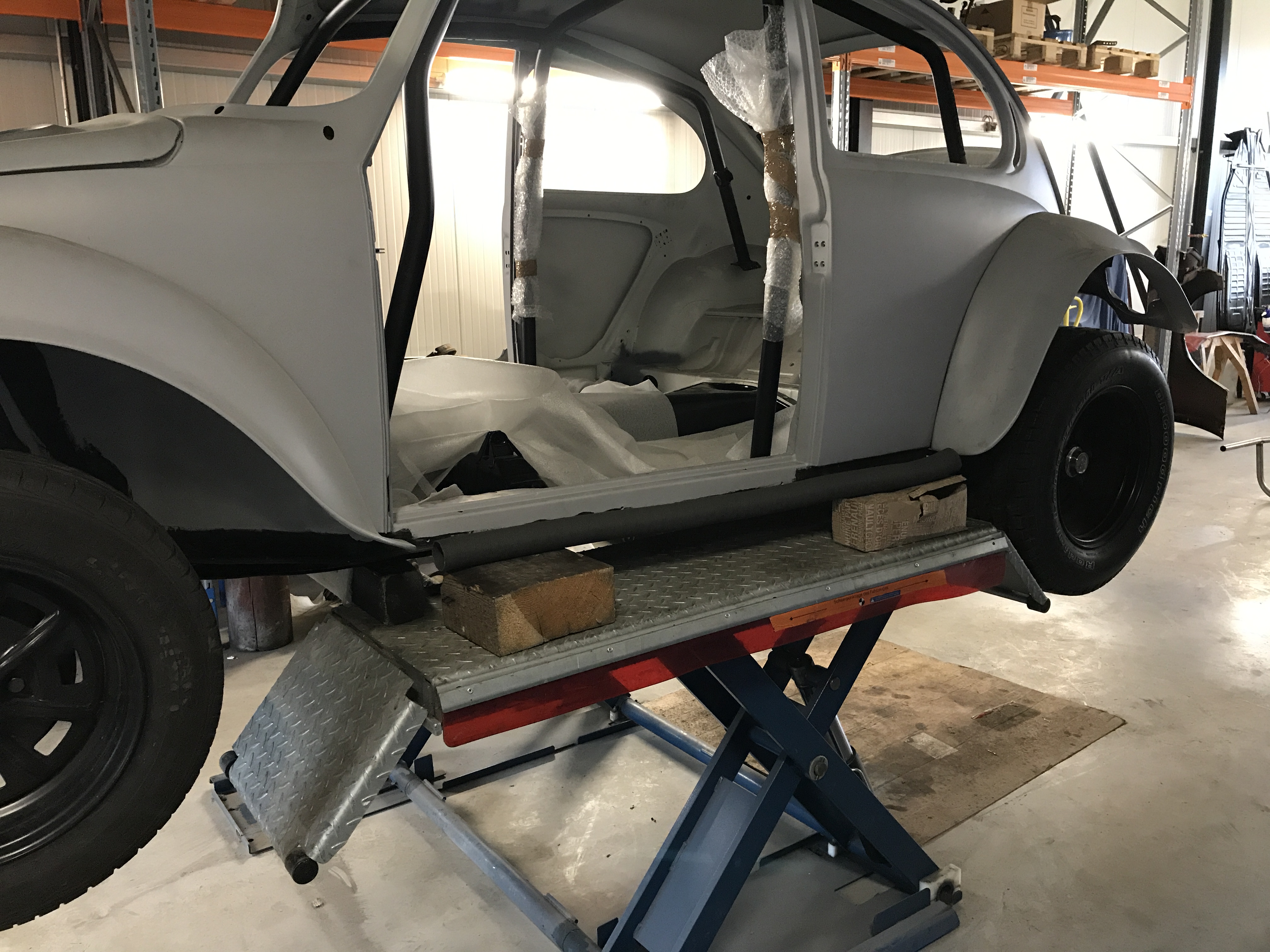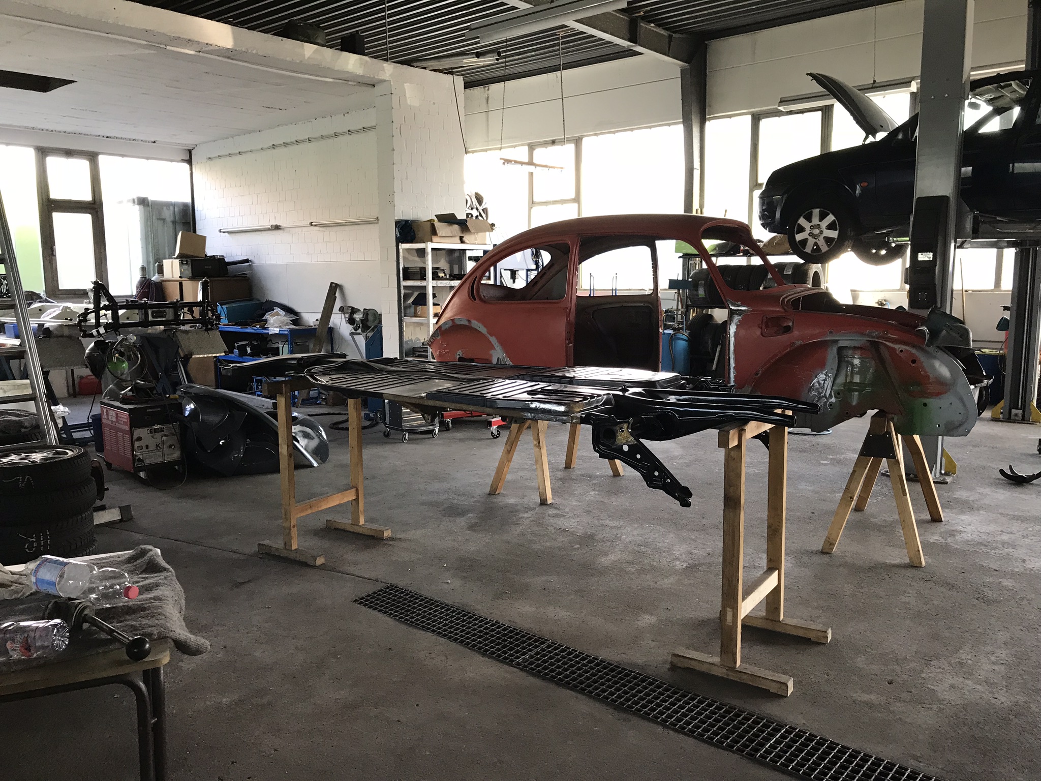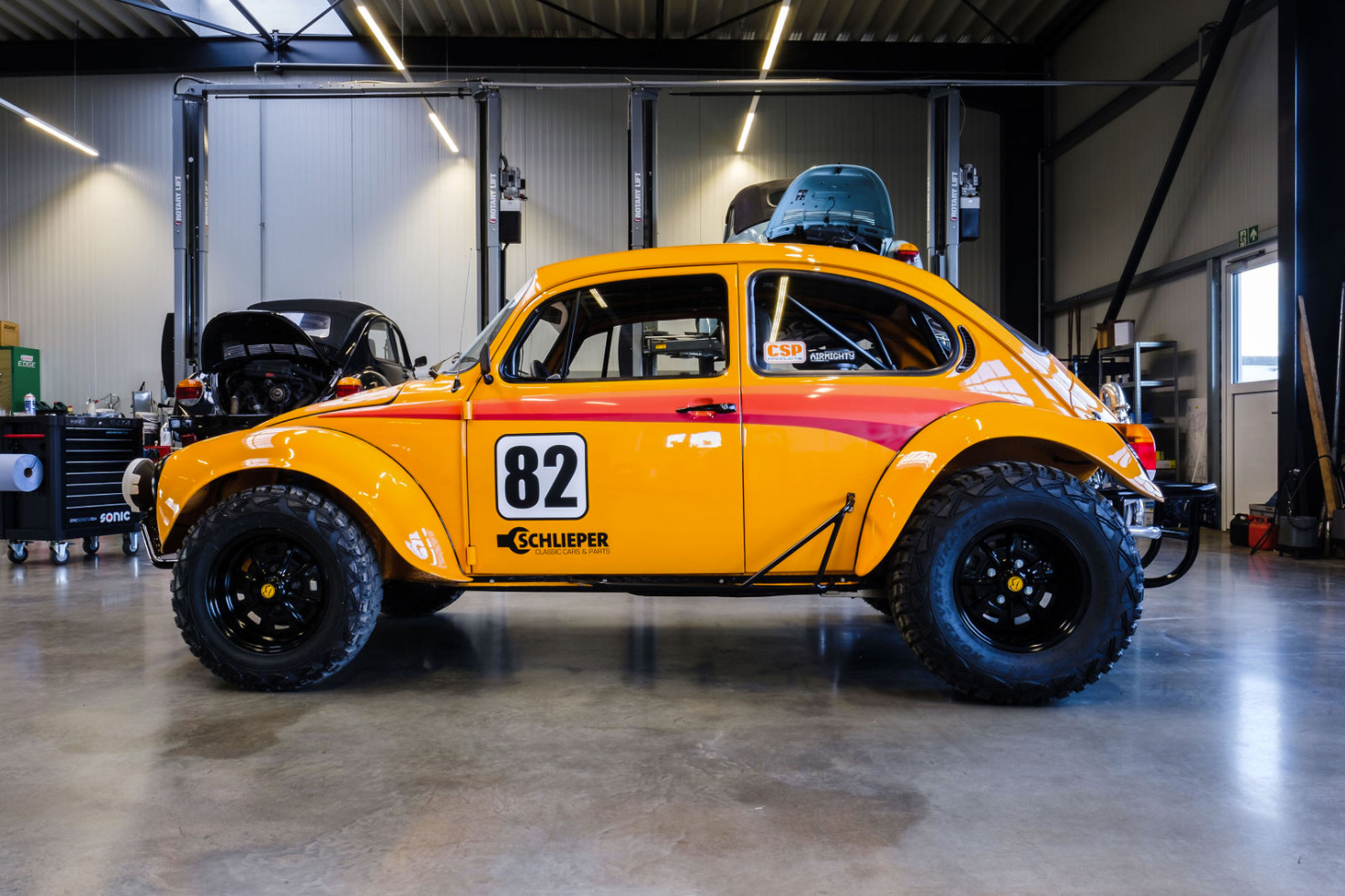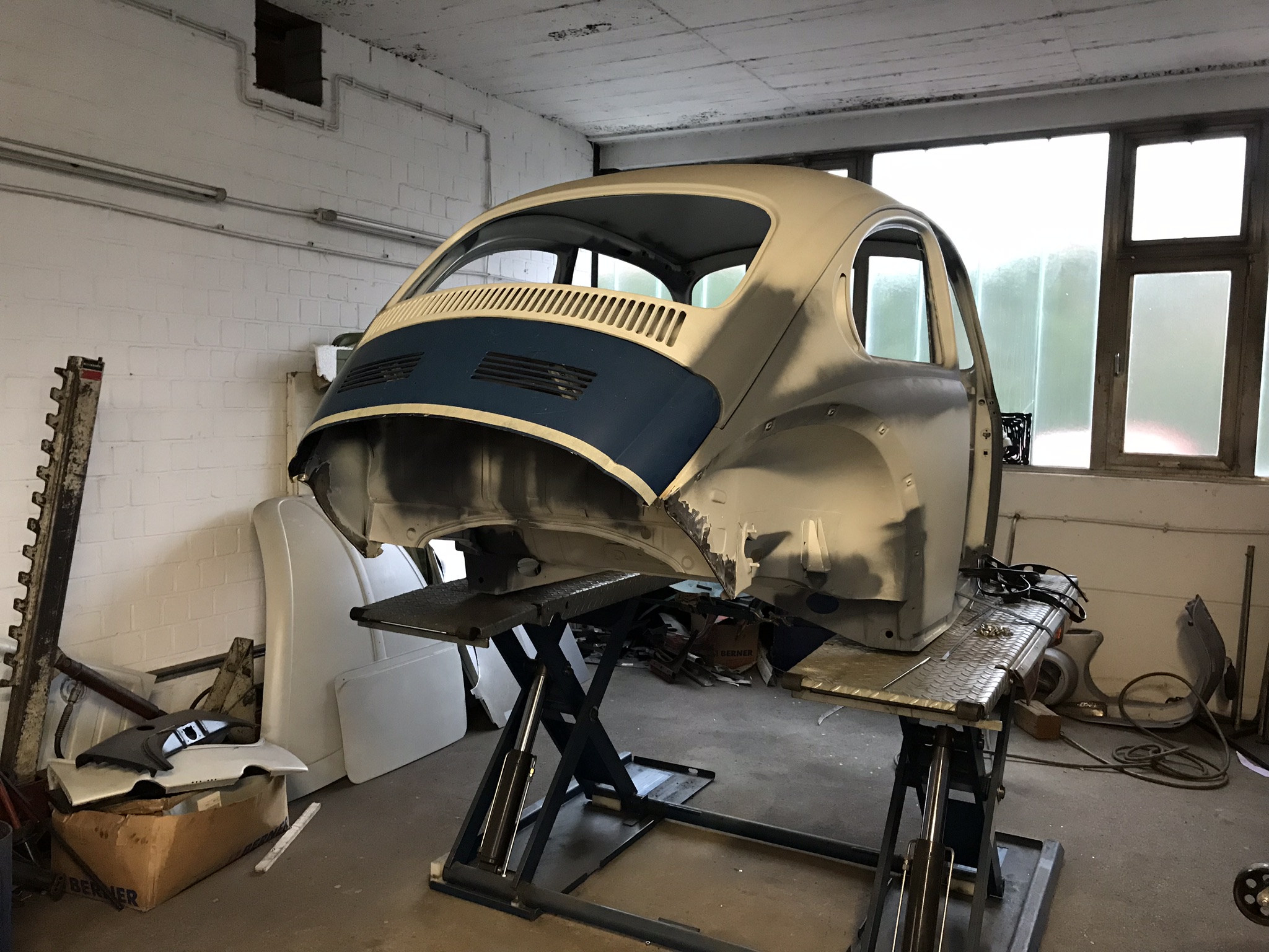 Neuaufbau eines 1303 mit gekürzter Front und Heck, GFK Hauben sowie verbreiterte Kotflügel. Dieses Umbau Kit wurde in den 70er Jahren von der Firma HAZ vertrieben, nur wenige Fahrzeuge haben davon überlebt. Das Basisfahrzeug wurde komplett zerlegt, sandgestrahlt, geschweißt und zum Schluß Epoxid grundiert. Die GFK Teile und Bleche wurden für eine perfekte Passgenauigkeit optimiert.
