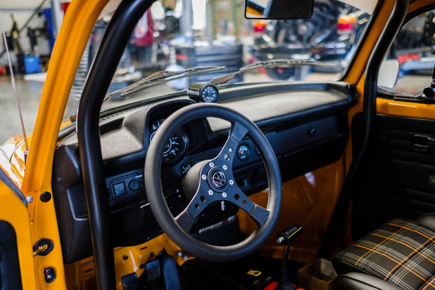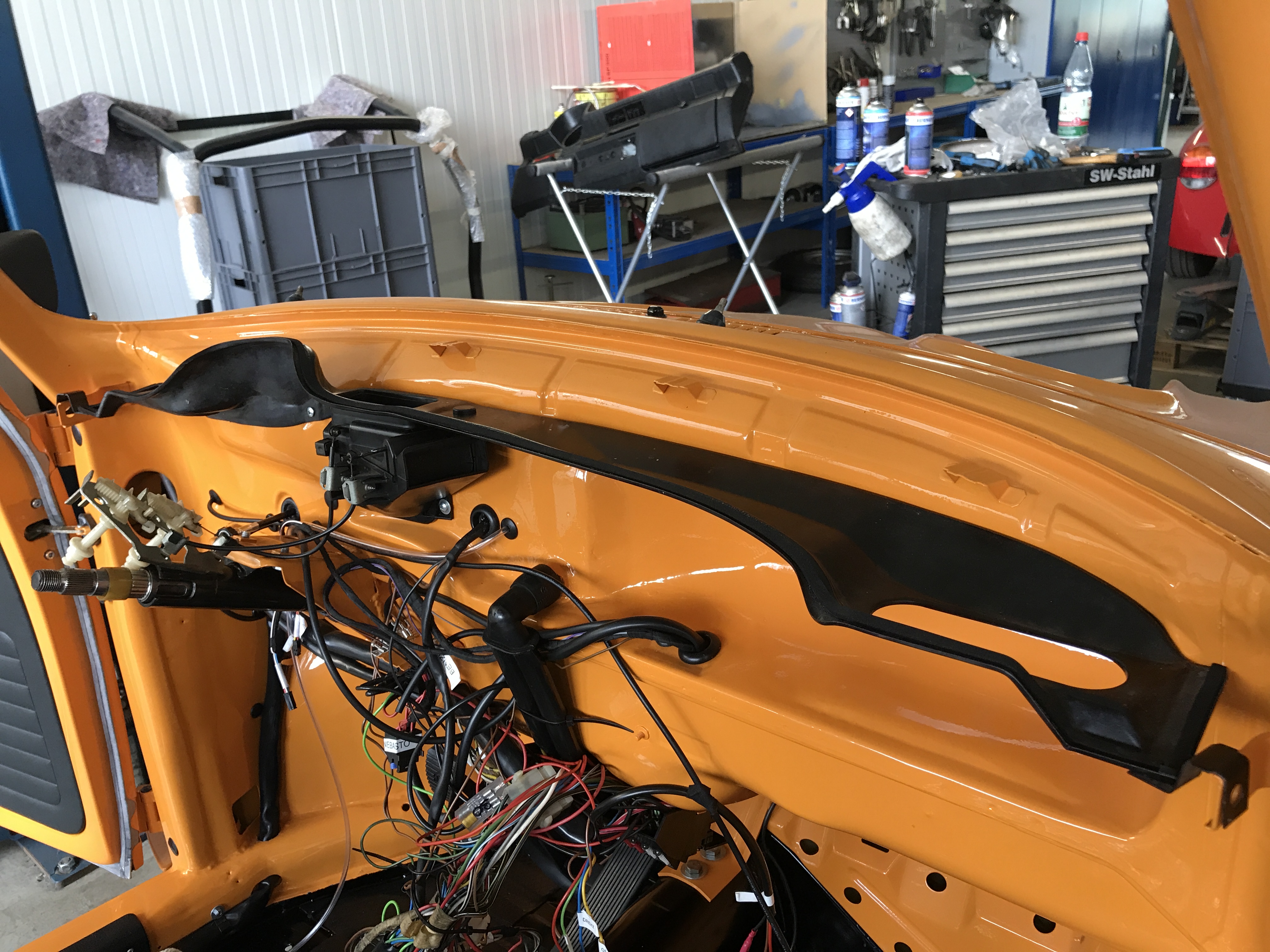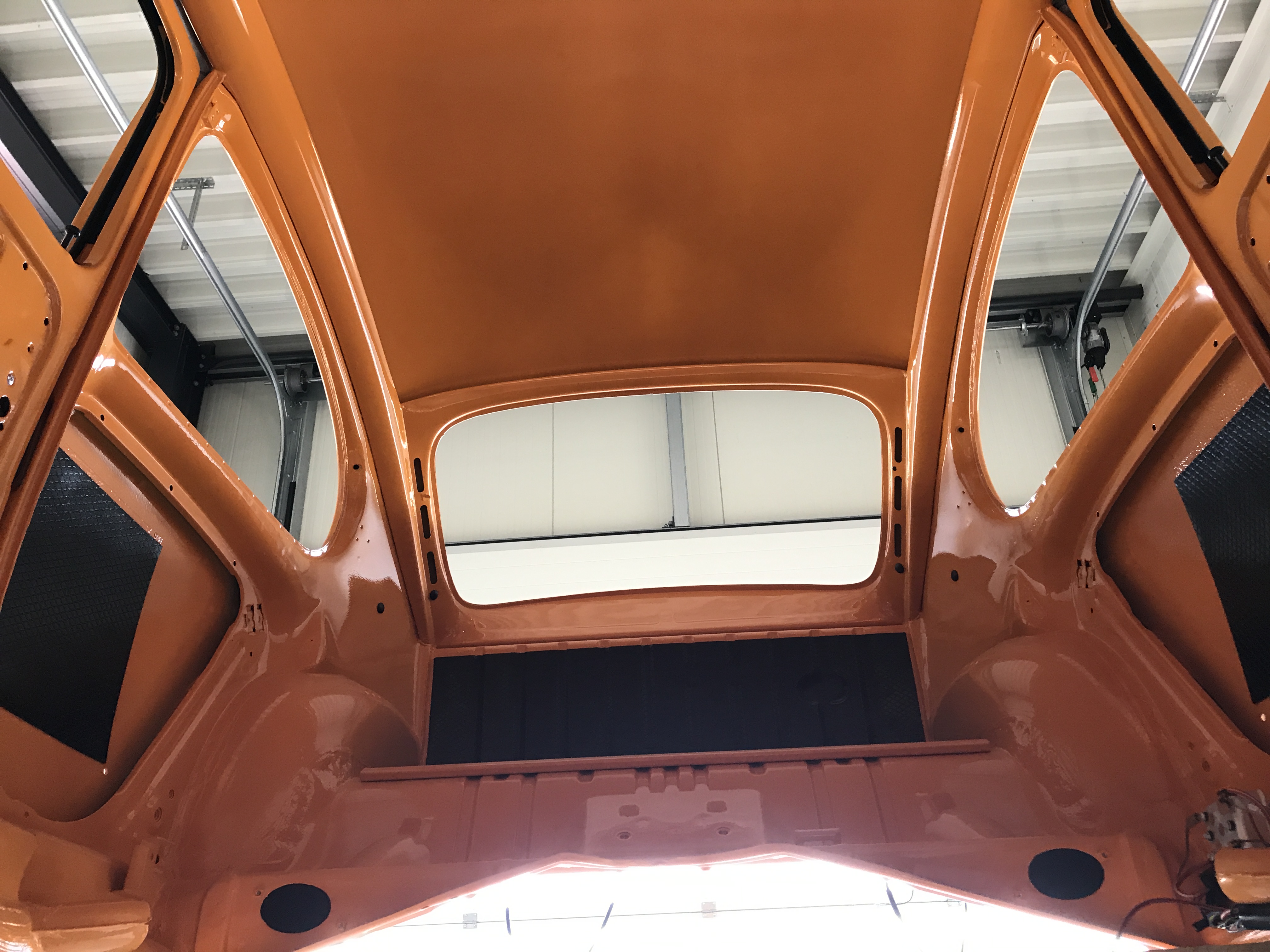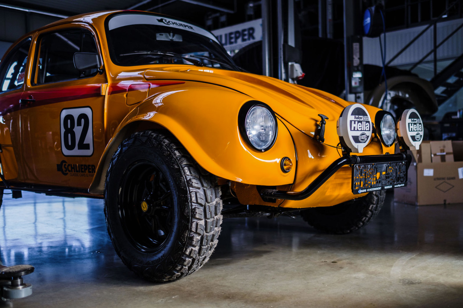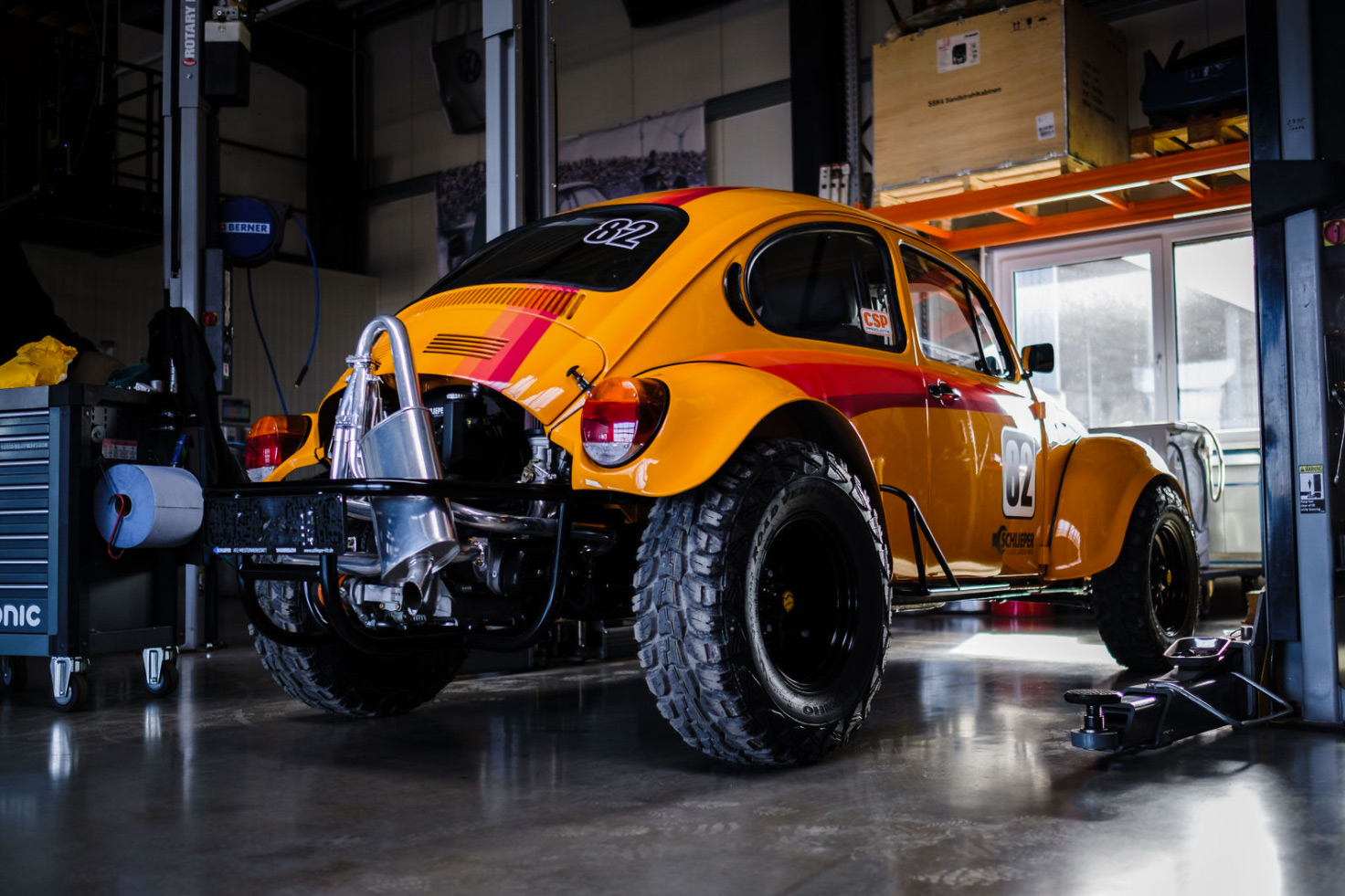 Neuaufbau eines 1303 mit gekürzter Front und Heck, GFK Hauben sowie verbreiterte Kotflügel. Dieses Umbau Kit wurde in den 70er Jahren von der Firma HAZ vertrieben, nur wenige Fahrzeuge haben davon überlebt. Das Basisfahrzeug wurde komplett zerlegt, sandgestrahlt, geschweißt und zum Schluß Epoxid grundiert. Die GFK Teile und Bleche wurden für eine perfekte Passgenauigkeit optimiert.