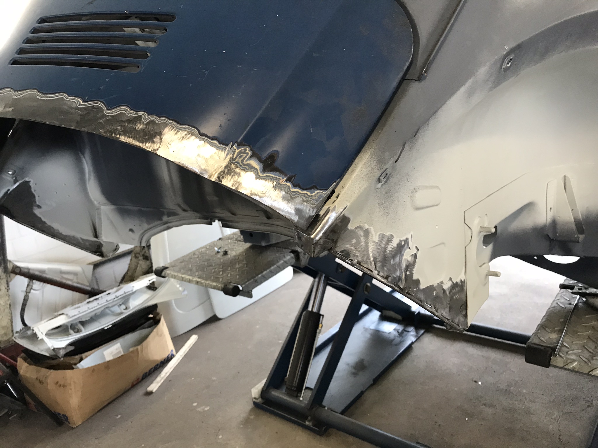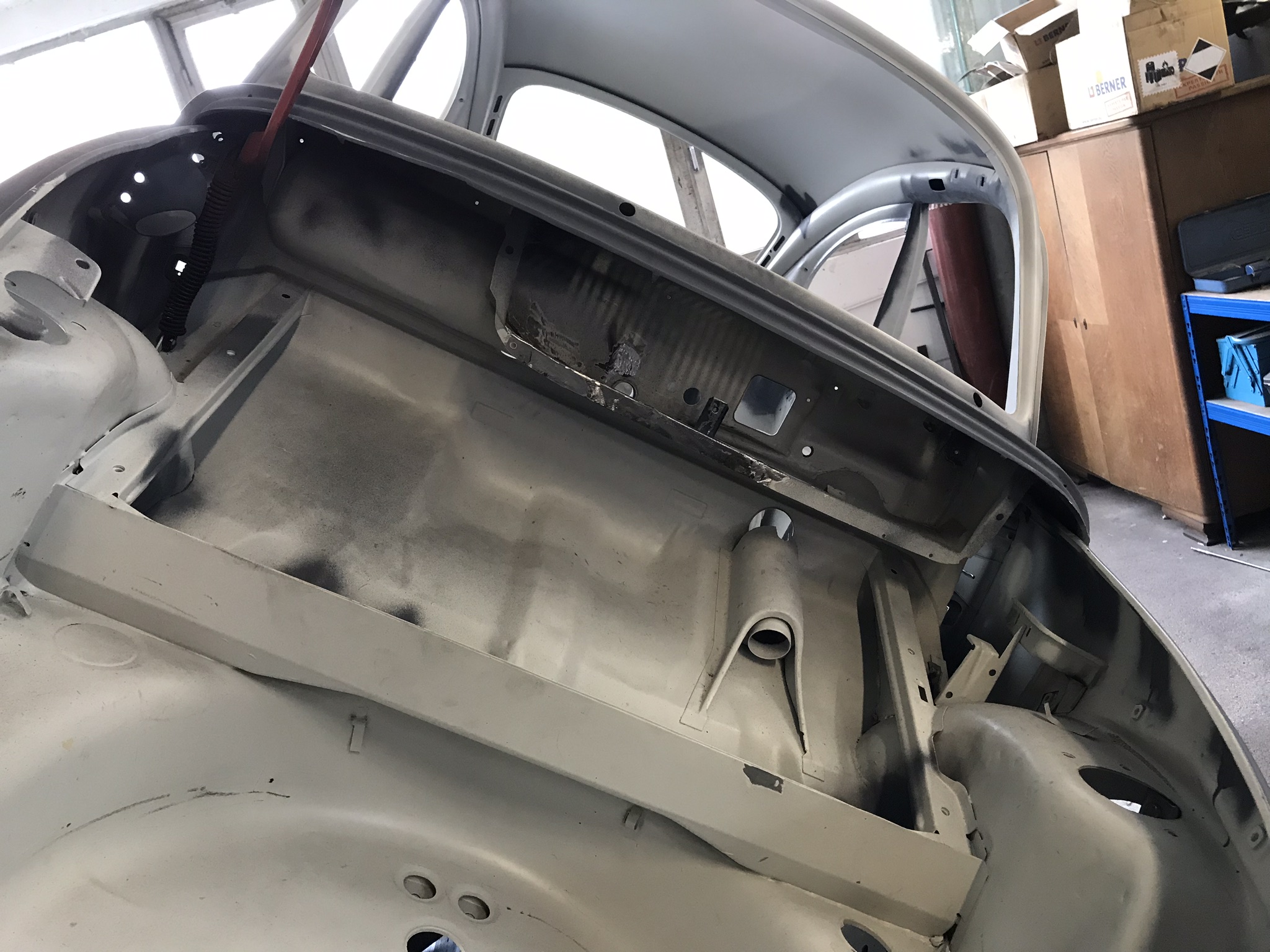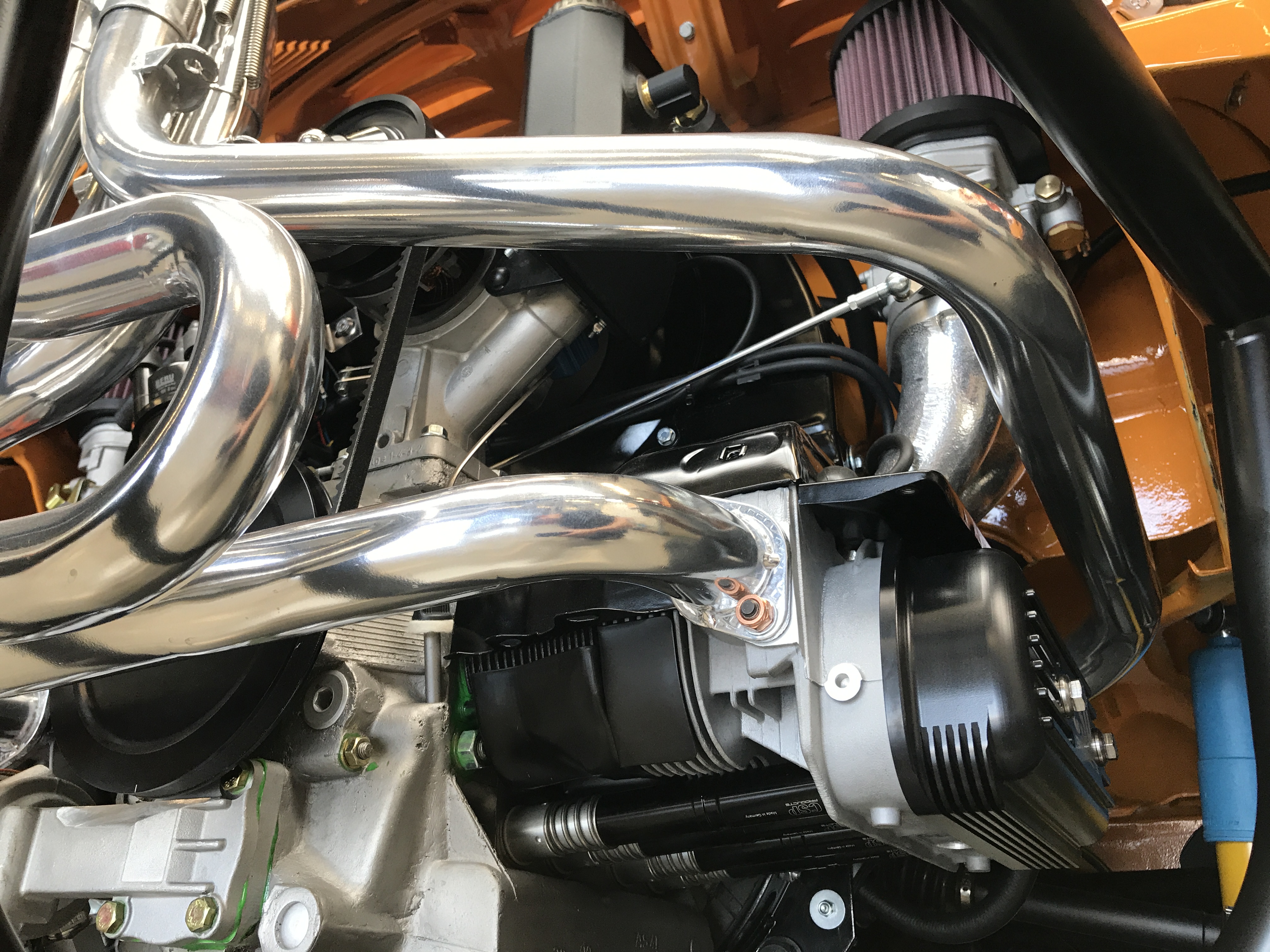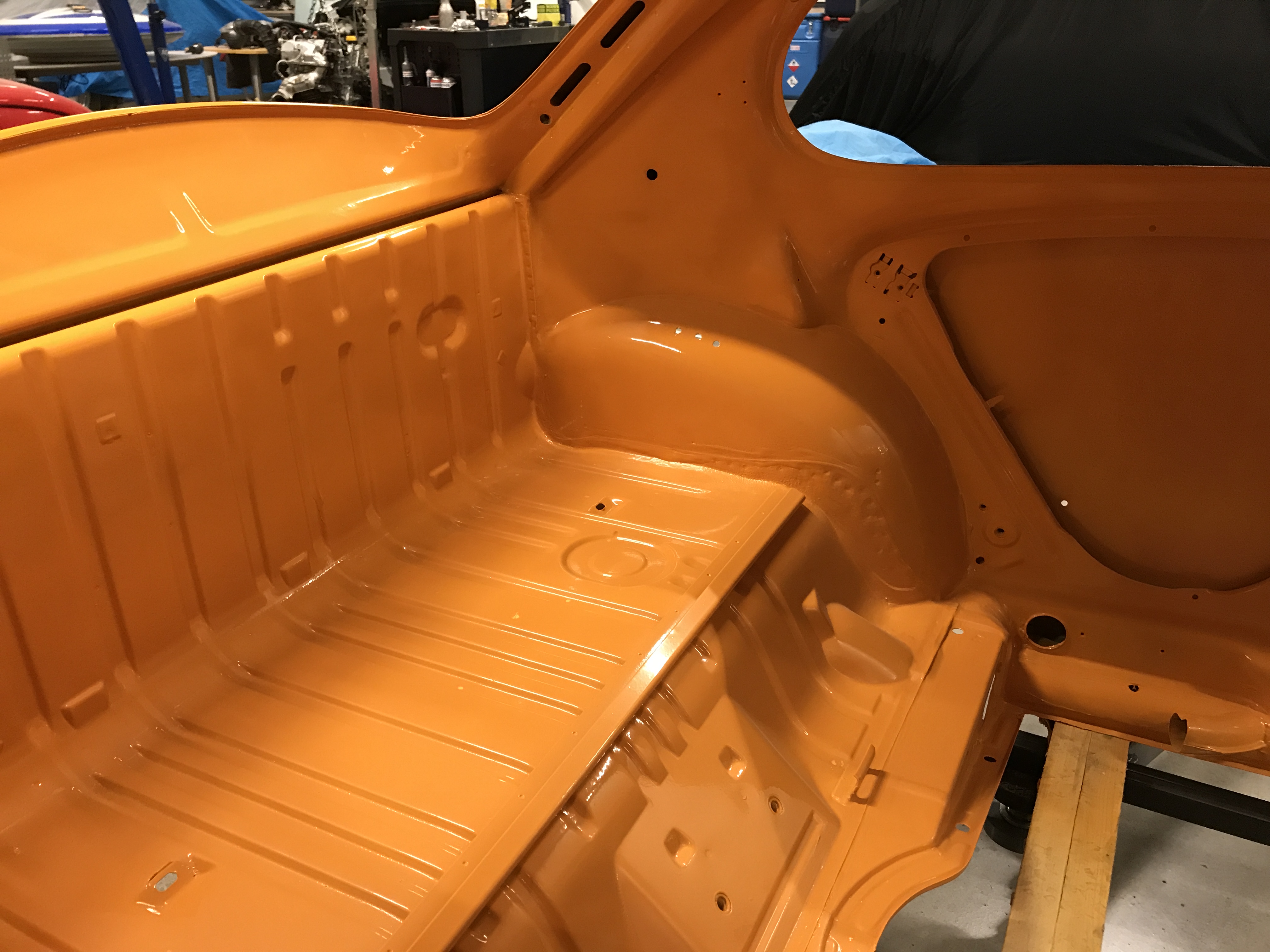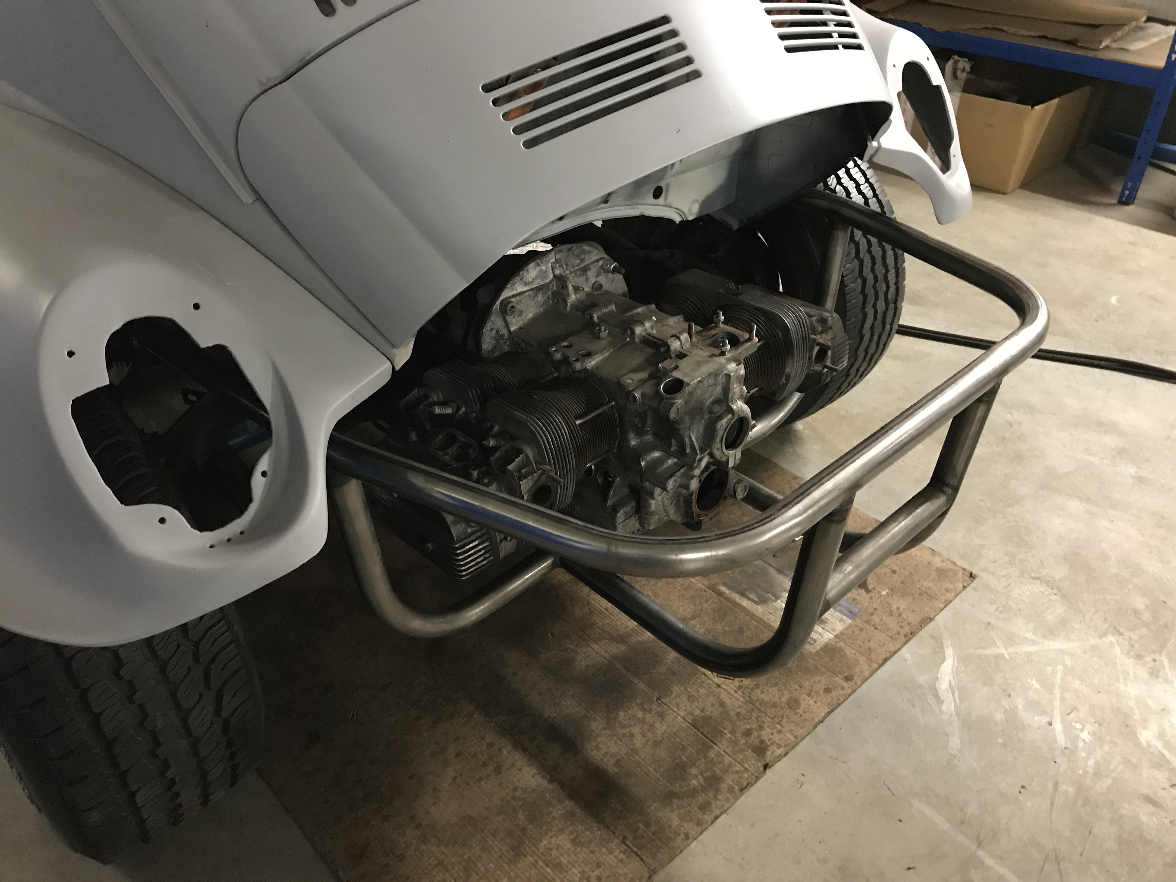 Neuaufbau eines 1303 mit gekürzter Front und Heck, GFK Hauben sowie verbreiterte Kotflügel. Dieses Umbau Kit wurde in den 70er Jahren von der Firma HAZ vertrieben, nur wenige Fahrzeuge haben davon überlebt. Das Basisfahrzeug wurde komplett zerlegt, sandgestrahlt, geschweißt und zum Schluß Epoxid grundiert. Die GFK Teile und Bleche wurden für eine perfekte Passgenauigkeit optimiert.