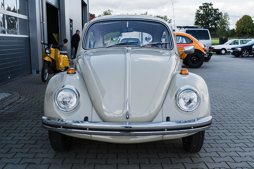 Dieser VW 1300 L wurde komplett mit viel Liebe zum Detail restauriert. Die Basis wurde komplett sandgestrahlt und alle rostbefallenen Blechteile durch neue Originalteile getauscht, nach aufwändiger Lackierung in savannenbeige und Hohlraumversiegelung wurde das Auto wieder mit den besten verfügbaren Teilen neu aufgebaut.
