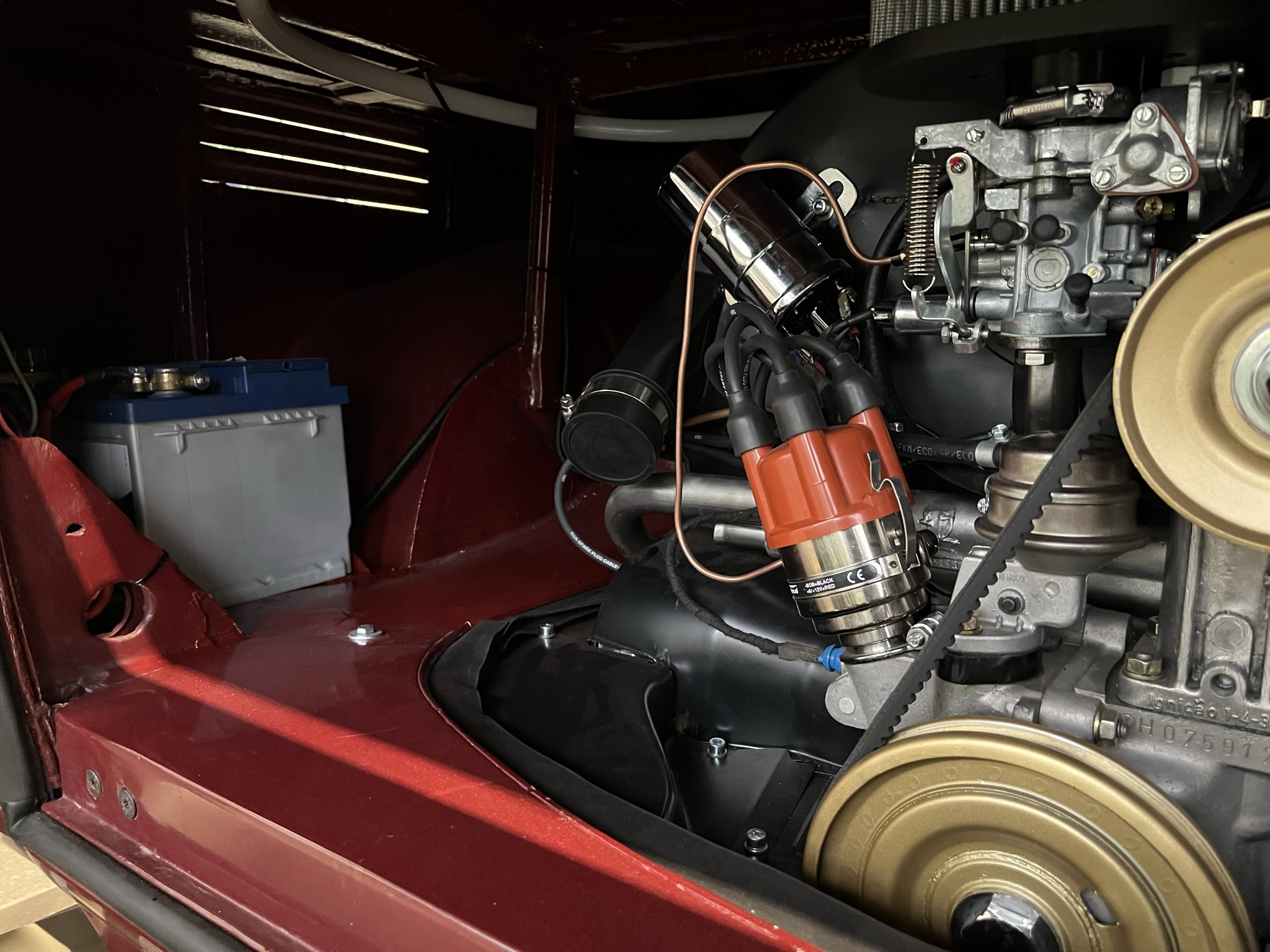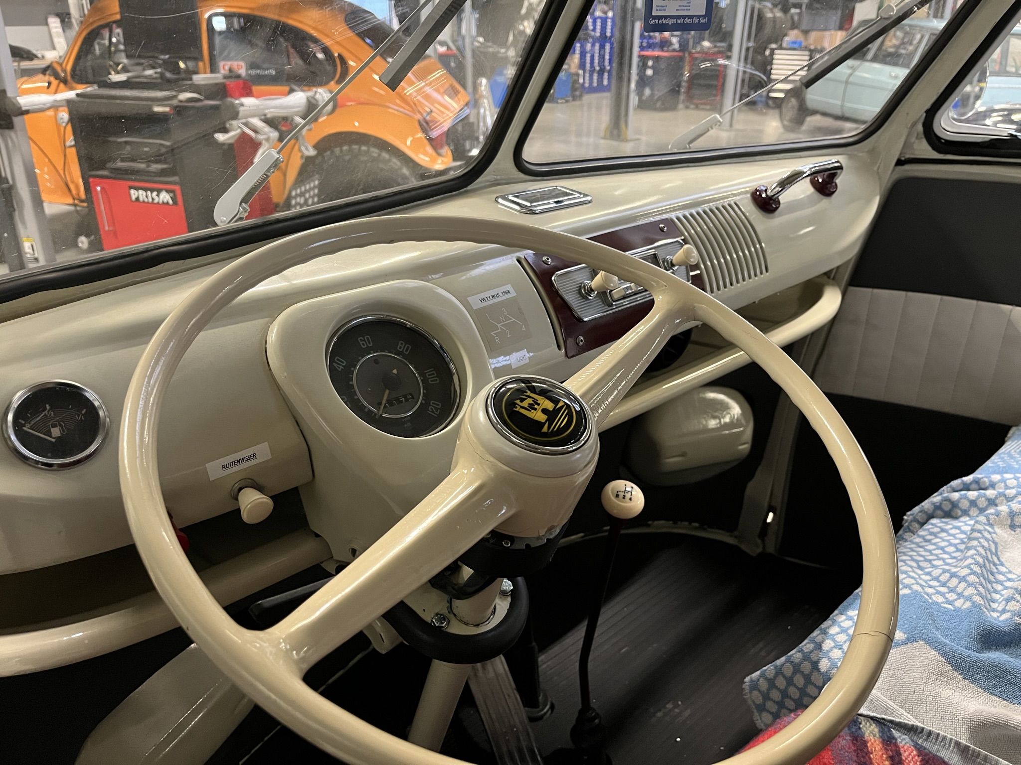 Dieser Brasilbus wurde von uns instandgesetzt und damit es den Zulassungsvorschriften entspricht mit einer Standheizung ausgestattet. Zusätzlich wurden viele Mängel beseitigt und ganz nach Kundenwunsch haben wir noch diverse Teile wie z.B. eine Zweitbatterie, Weißwandringe und BlazeCut Feuerlöschsystem eingebaut.
