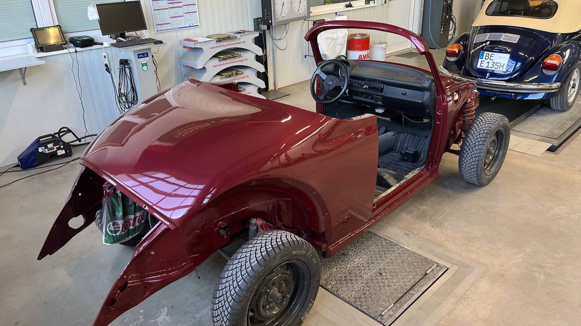 Im Auftrag wird der Speedster optimiert und für das H-Kennzeichen aufgefrischt. Eine Besonderheit dieses 1303 ist der Umbau zum Speedster in den 90er Jahren, zusätzlich wurde damals der Motor gegen einen Wasserboxer aus dem T3 ausgetauscht, das ganze gepaart mit seltenen Wolfrace Alu Felgen und Sonderlackierung. Insgesamt war das Auto nun verbraucht und der ein oder andere Mangel war vorhanden. Der Umbau auf Wasserkühlung wurde auch nur provisorisch vorgenommen so dass es eine Optimierung benötigt.