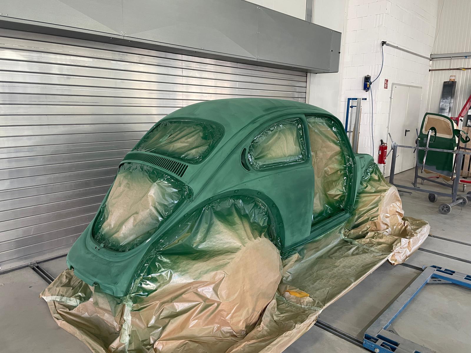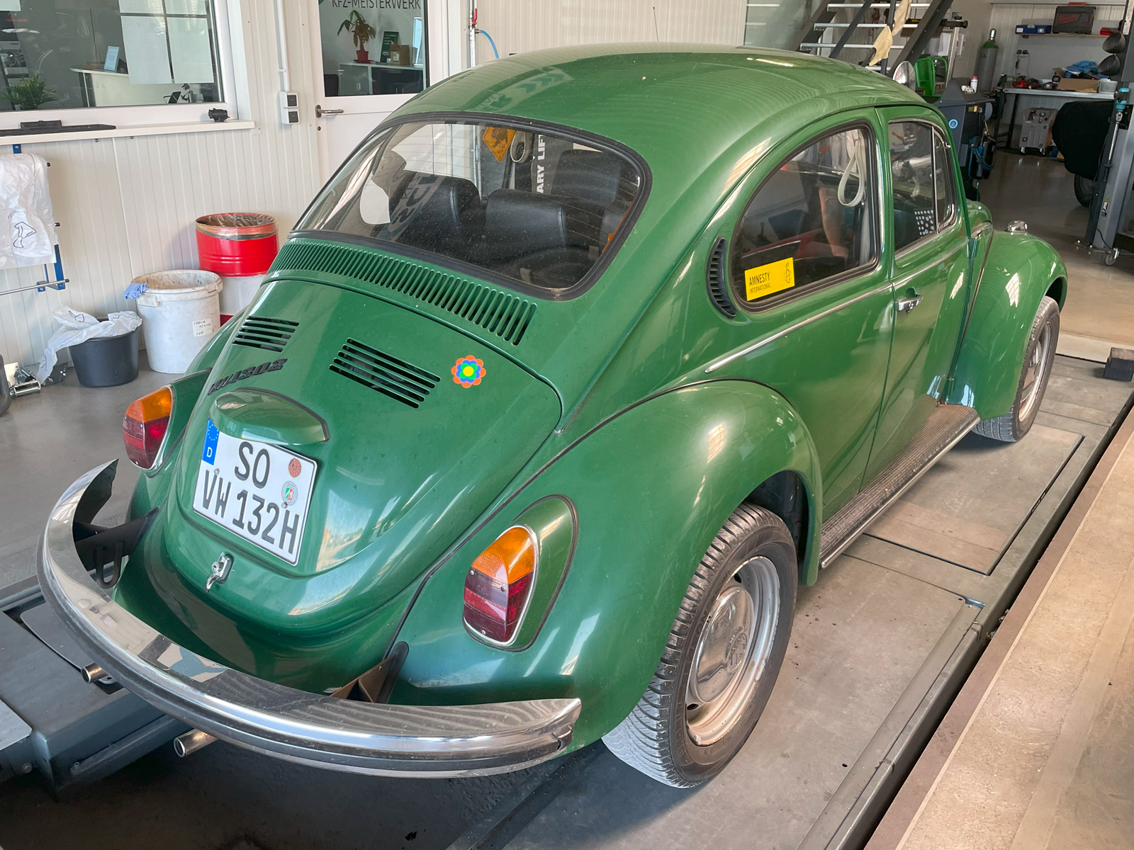 Dieser Käfer ist seit Jahrzehnten in Familienbesitz und begleitet seine Besitzerin durch den Alltag. Das hat über die Jahre seine Spuren hinterlassen und nun brauchte das Auto eine Auffrischung. Nach einer umfangreichen Bestandsaufnahme einigte man sich auf eine Teilrestauration. Die Bodenhälften, Schweller und viele weitere Blechteile wurden ersetzt und der Käfer neu lackiert. Innen wurden Himmel ersetzt und Sitze neu bezogen, zum Schluß erfolgte eine Rostschutzversiegelung.